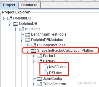 把本教程功能模块代码导入本地集成开发环境(DolphinDB GUI),功能模块源码见附录 SnapshotFactorCalculationPlatform。导入的目录结构必须严格按照下图所示结构: