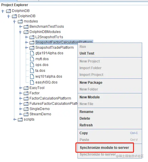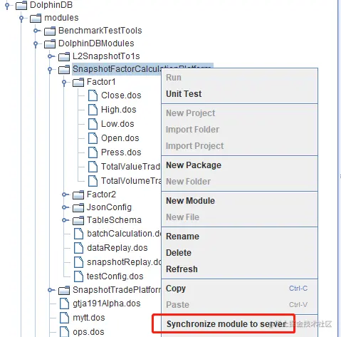 右击 SnapshotFactorCalculationPlatform 目录,把本地模块代码同步到 DolphinDB server 端。
