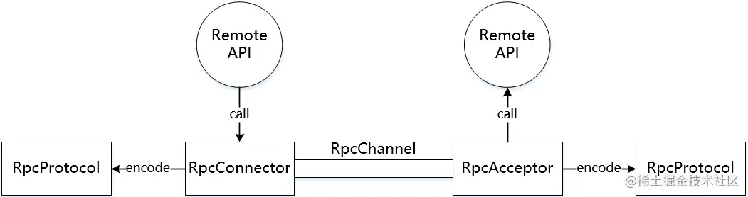 - RpcCaller,负责编码和发送调用请求到服务方并等待结果