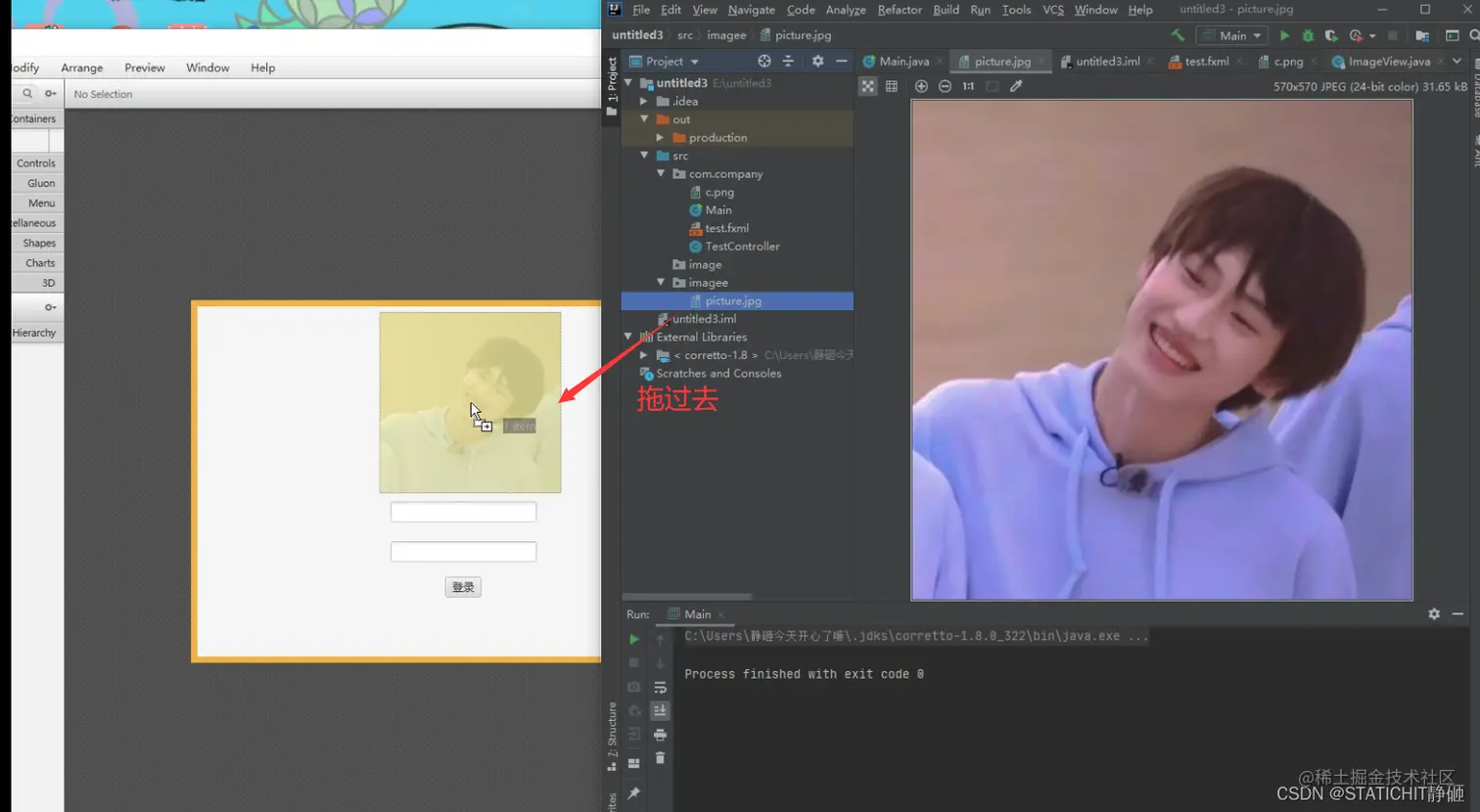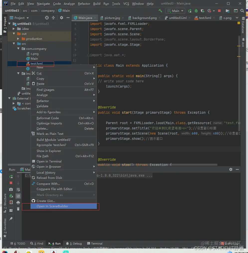 右键fxml文件,点击最底端的Open in SceneBuilder