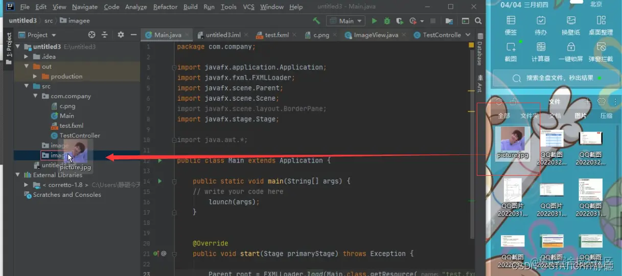 2. 把图片文件拖到idea里你这个包里