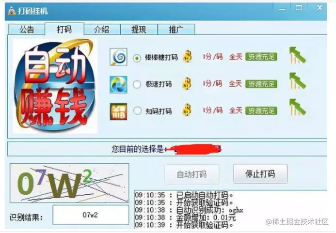 **打码平台。**打码平台主要是一个数据录入的工作台,其题目主要来源于各个平台的验证环节验证码中的文字、图像、坐标等。验证打码是一种区别用户是计算机还是人的公共种类众多的验证码全自动程序。这个问题可以由计算机生成并评判,但是必须只有人类才能解答。黑产技术上无法识别的验证码通常会通过人工打码方式进行破解。