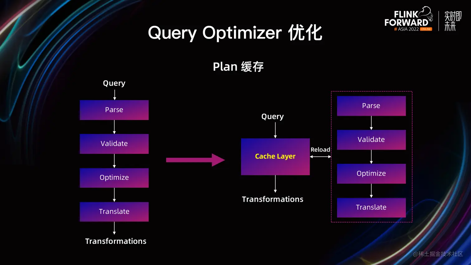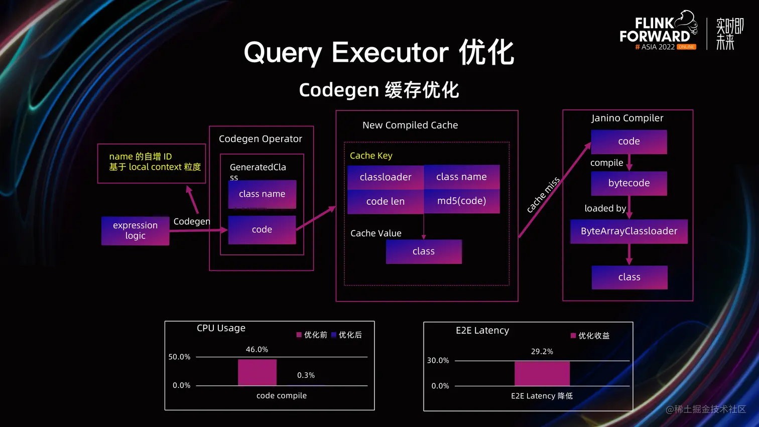 - 当前的机制只实现了同一个作业内部,同一个 Task 不同并发的复用,但是对于同一个 Query 的多次执行,依然存在重复编译;