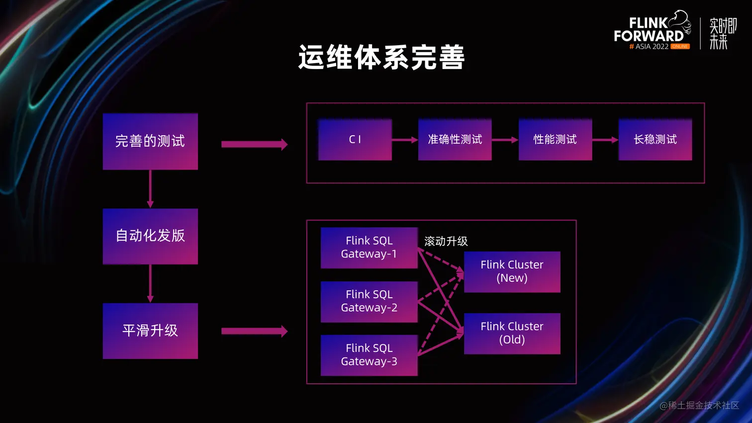 构建运维发版流程:在进行完善的测试后,使用自动化流水线,对上下游依赖的所有组件统一发版,最后对线上集群进行平滑的升级。