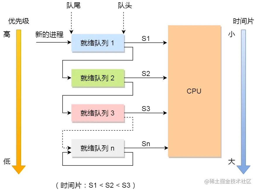 多级:多个队列,每个队列优先级从高到低,同时优先级越高时间片越短。