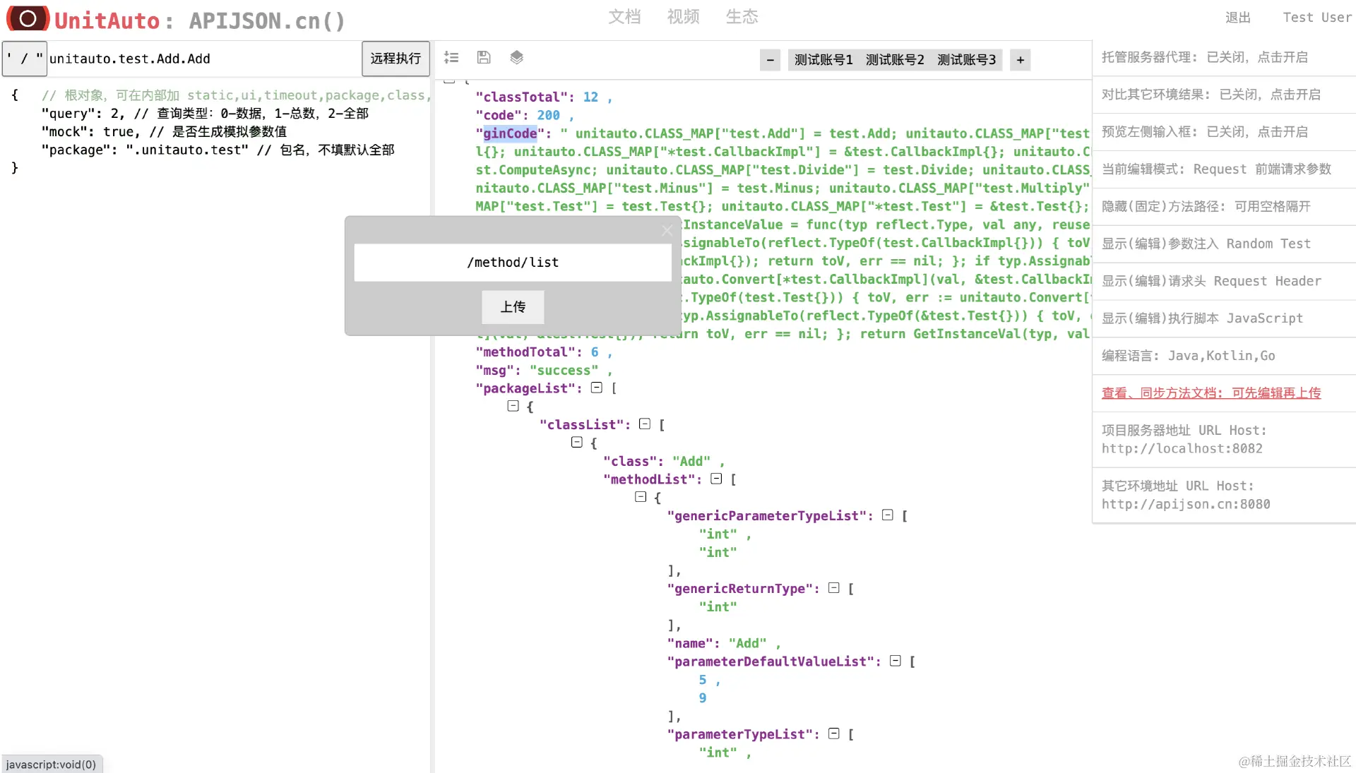 POST /method/list 自动生成注册 func 和 struct 的代码,方便粘贴到项目使用;