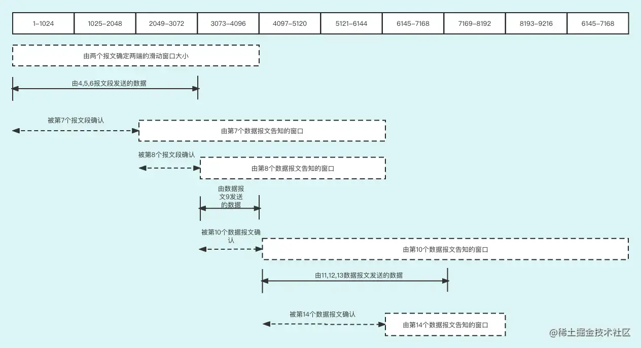 比如下面的 TCP 滑动窗口动态变化流程图: