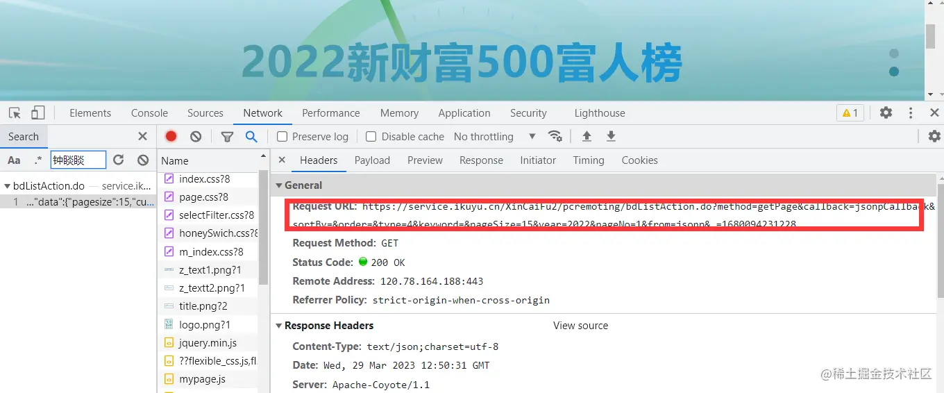 确定好我们的目标网址之后,我们要找到我们需要的数据源,通过开发者工具分析,我们不难发现其数据地址。