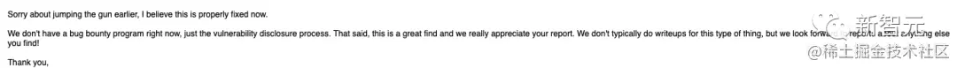 在这漏洞被修复后,Nagli 还收到了 OpenAI 的表扬邮件。