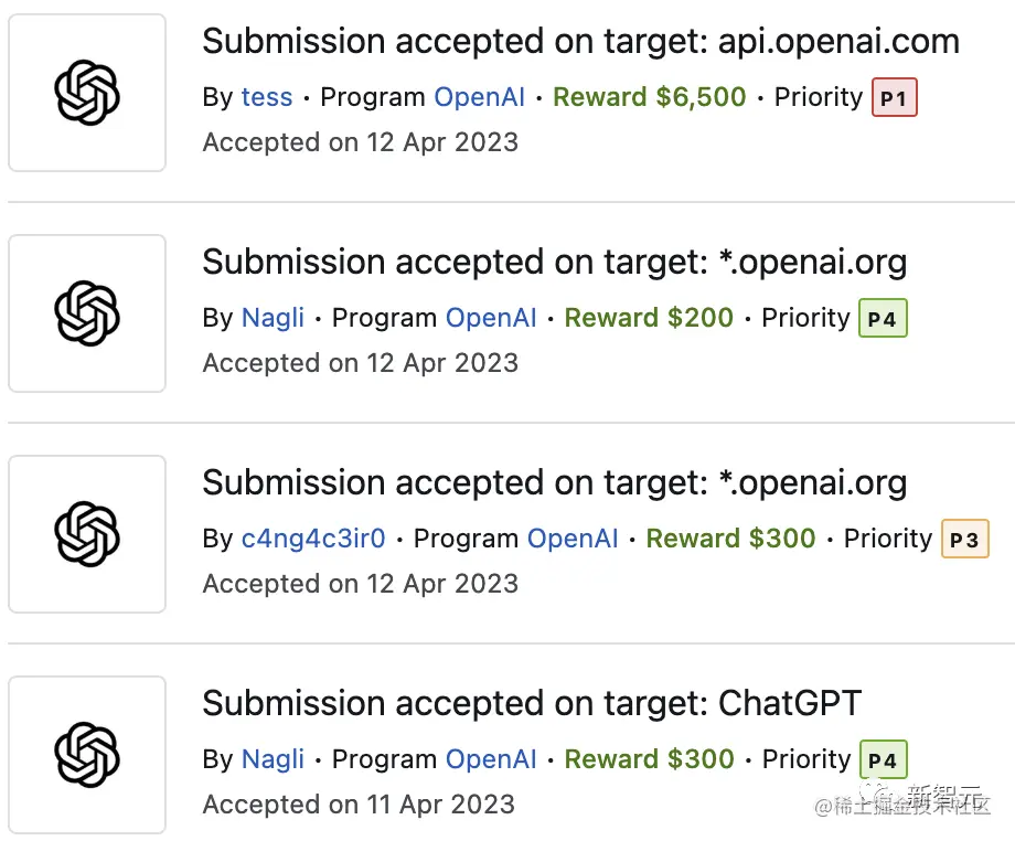 今天,OpenAI 宣布了一个 bug 赏金计划,赏金从 200 美元到 20000 美元不等。