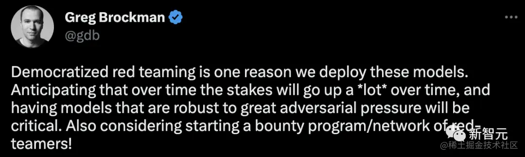 这一计划的推出并不令人意外。此前联合创始人 Greg Brockman 在推特上透露,OpenAI 正考虑启动赏金计划 / 红队网,来检测薄弱环节。