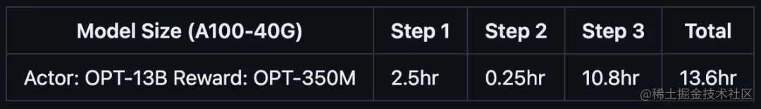 具体来说,针对不同规模的模型和硬件配置,DeepSpeed-RLHF 系统所需的时间和成本如下: