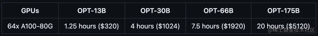 而如果使用多节点、多 GPU 系统,DeepSpeed-HE 可以花 320 美元,在 1.25 小时内训练一个 OPT-13B 模型,花 5120 美元,就能在不到一天的时间内训练一个 OPT-175B 模型。