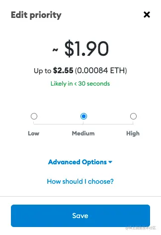 最高费用是你愿意为每单位Gas支付的绝对最高金额,以使你的交易得到确认。在这里,事情可能会变得有点混乱--因为在大多数情况下,你的实际交易费用将低于你预先指定的最高费用。以下是原因阐述:
