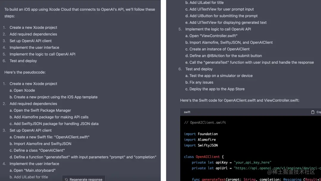 任务 12:让 GPT-4 在几分钟内构建一个完整的 iOS 应用程序,要求使用连接到 OpenAl API 的 Xcode Cloud 进行构建。具体步骤包括:创建一个新的 Xcode 项目、添加所需的依赖项、设置 API 客户端、实现用户界面、实现调用 OpenAl API 的逻辑……