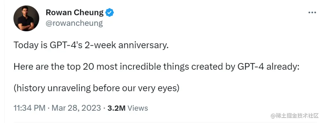 Altman 说的 「有点害怕」可不是虚晃一枪,在接下来的文章里,我们将介绍推特用户 Rowan Cheung 总结的 GPT-4 做过的 20 件最不可思议的事情。