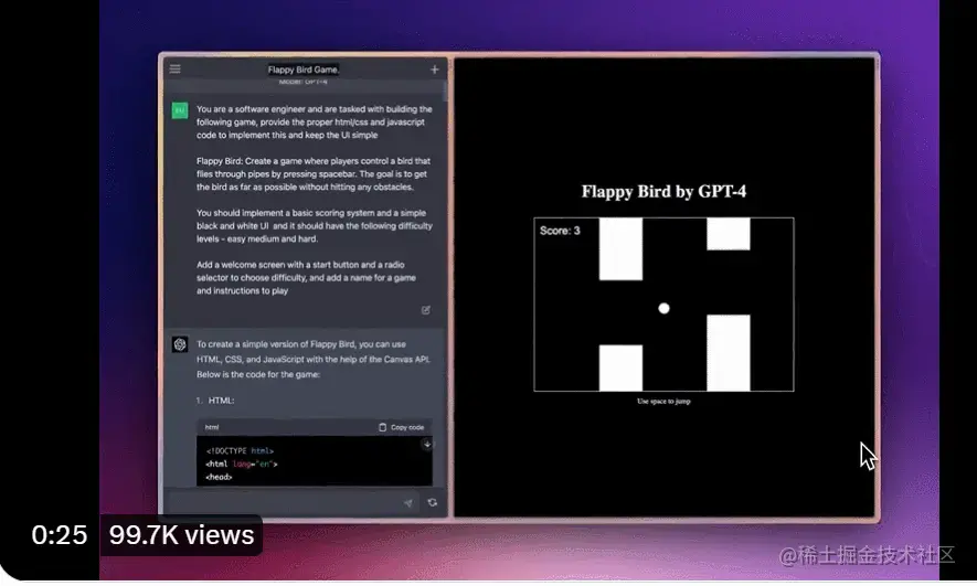 任务 3:用 GPT-4 编写街机游戏,效果如下: