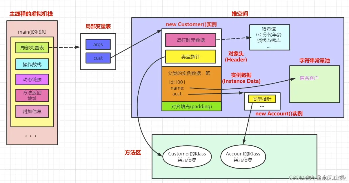 它是对象真正存储的有效信息,包括程序代码中定义的各种类型的字段(包括从父类继承下来的和本身拥有的字段)