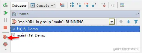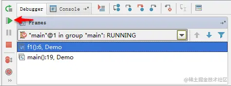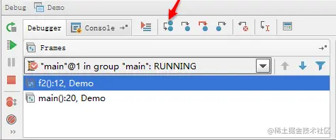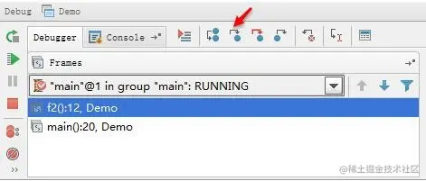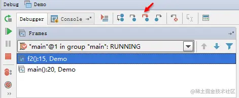 点击该按钮后,你将返回到当前方法的调用处(如上图,程序会回到main()中)重新执行,并且所有上下文变量的值也回到那个时候。只要调用链中还有上级方法,可以跳到其中的任何一个方法。