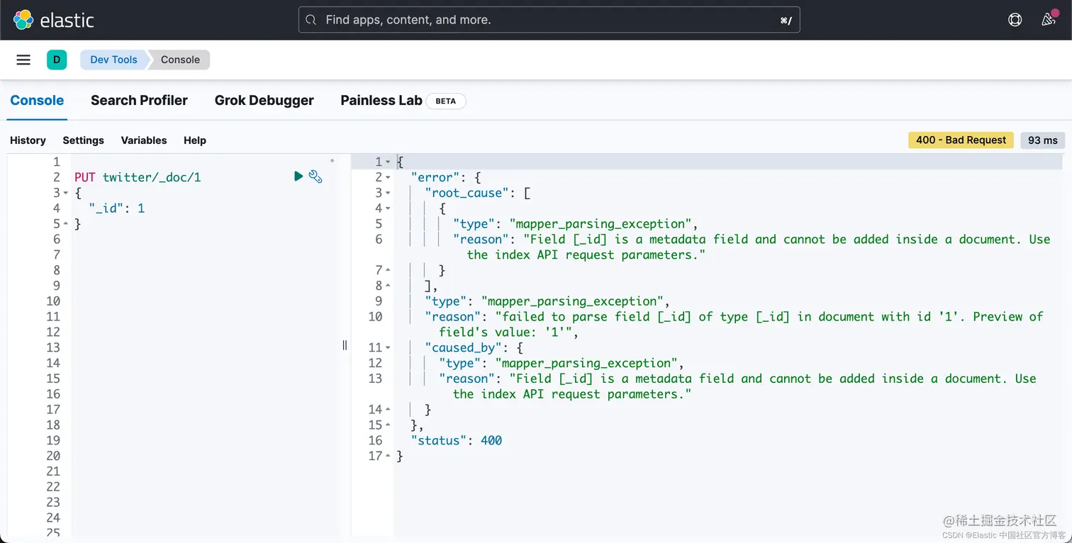 Elasticsearch 有一些保留的字段名称,你不能在文档中使用这些名称。