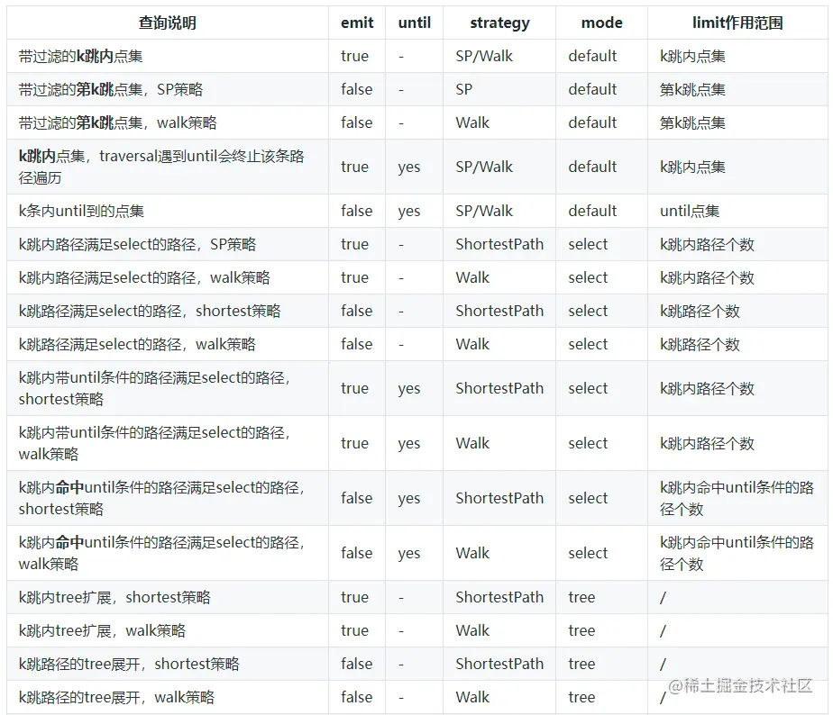 为了简化多跳过滤查询的表达,我们用一些参数来表达查询过程。如前面章节介绍过的遍历策略,batchSize等。