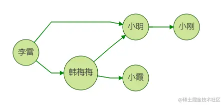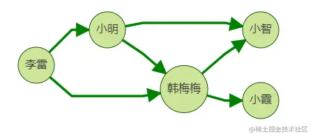 我们向李雷推荐好友,思路是:向他推荐其好友的好友,但是推荐的好友中不应包含李雷本身的好友,比如图中韩梅梅同时是李雷的一跳好友和二跳好友。这时我们不应向李雷推荐韩梅梅,因为她已经是李雷的好友了。