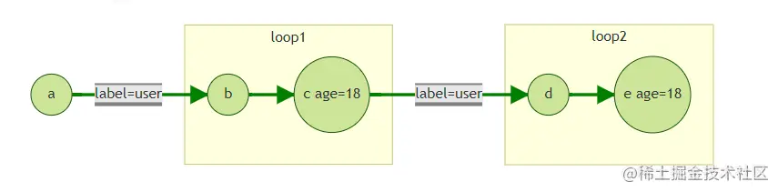 当然,我们也可以有更多的更丰富的输出。比如我们希望将输入点李雷的id和label都展示在路径中,并且去掉了中间第一跳的好友小明和韩梅梅,直接显示李雷及其第二跳好友的关系: