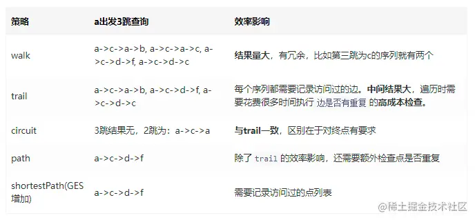 ShortestPath:以shortestPath的规则进行图遍历:即在BFS traversal的过程不会遍历在前面跳数出现过的点。在这种模式下的路径每个终点到起点都是最短路径。