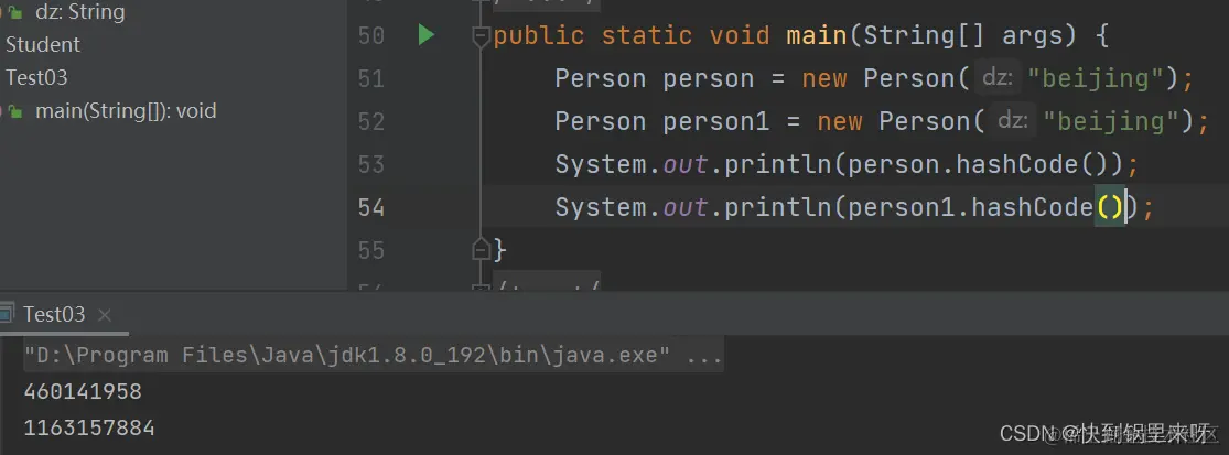 🟫 两个dz是相同的,然后直接用hashCode计算内存地址,然后代码发现,内存地址是不同的