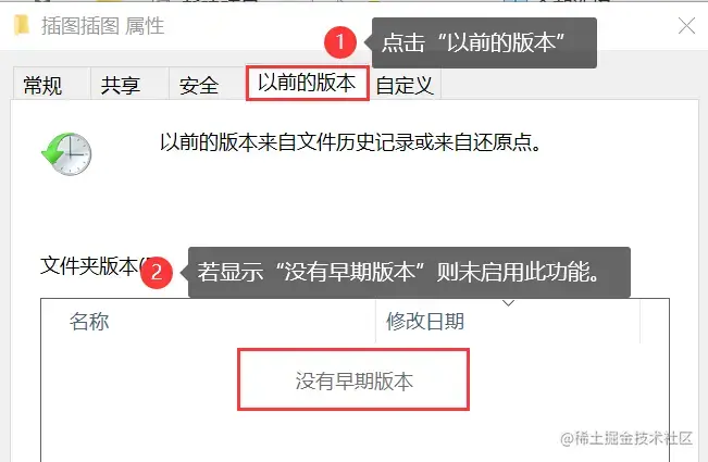 提示:如果没有开启此功能,会显示【没有早期版本】,则无法使用此方法。