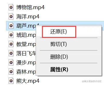 - 找到被删除的视频文件,右键点击并选择 【还原】 或 【恢复】 选项,将文件还原到其原始位置。