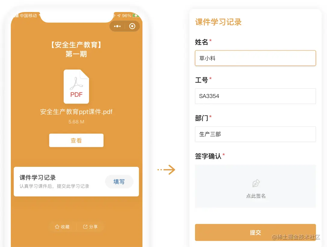 在二维码中使用 【表单功能】 ,学员在查看完码内容后就可以填写表单,留下学习记录。