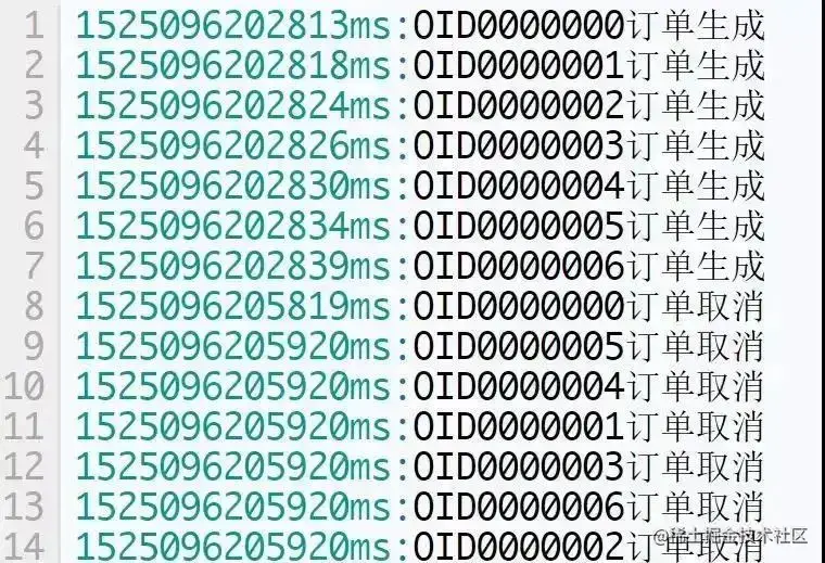 System.out.println(System.currentTimeMillis() + "ms:" + orderId + "订单生成");