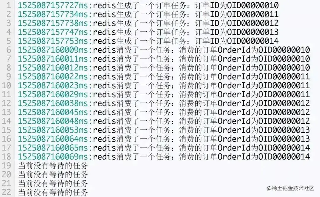 System.out.println(System.currentTimeMillis() + "ms:redis消费了一个任务:消费的订单OrderId为" + orderId);