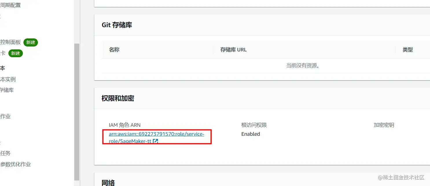 2.3:配置角色策略——我们可以在笔记本示例详情中找到配置的IAM角色: