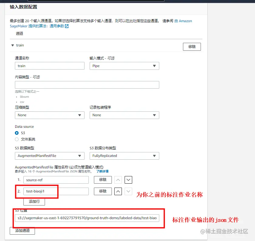 然后我们就可以在Amazon SageMaker 中使用 output.manifest 文件来进行模型的训练。