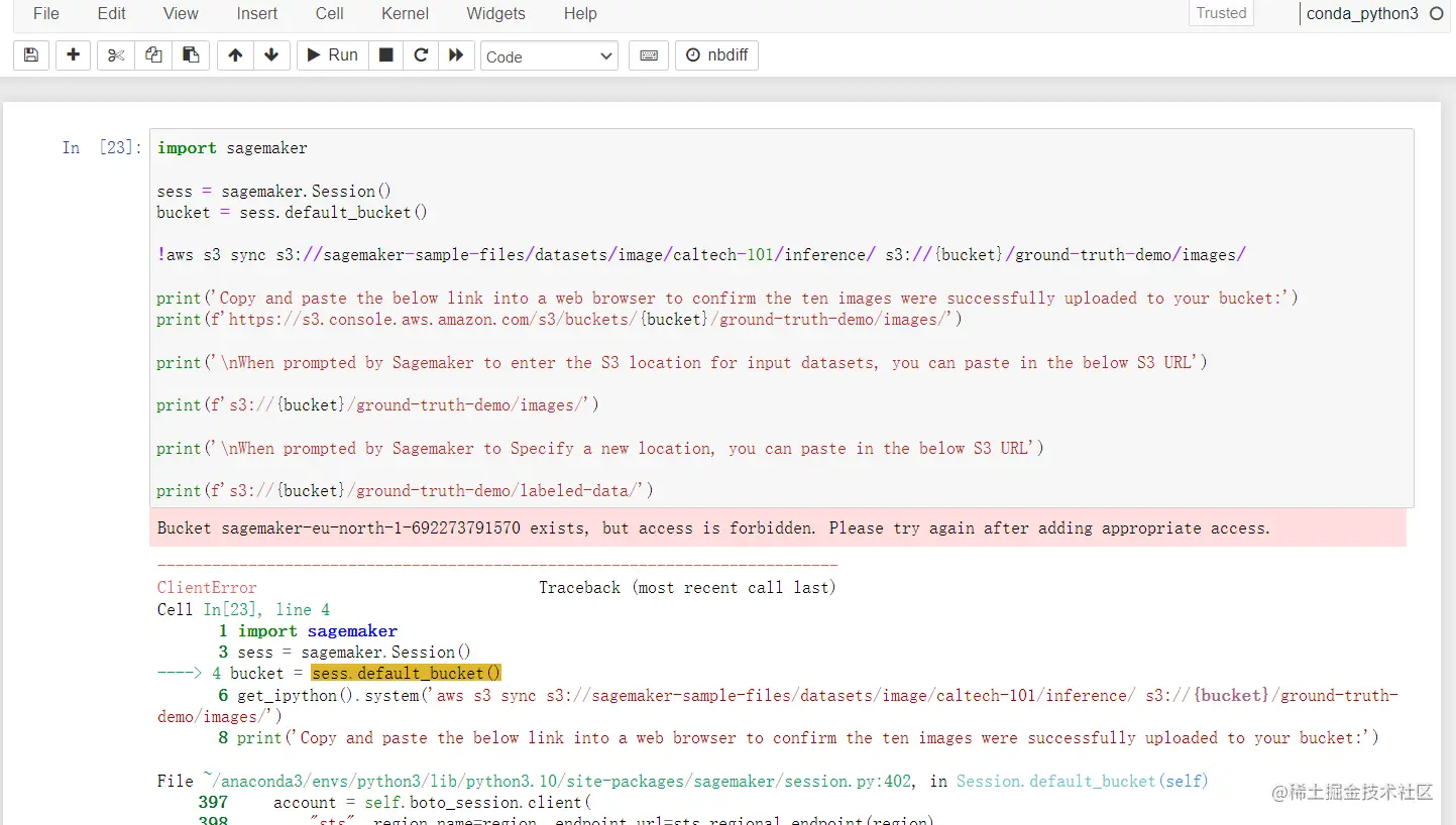 1、S3 Bucket创建时需要按照这个命名规则:*sagemaker-- *,否则运行上面的示例代码时会报错。