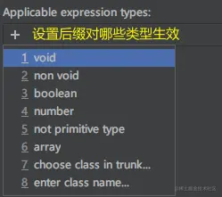 这里我选的java8,接着可以设置后缀补全对哪些类型生效:
