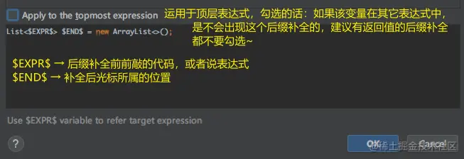 直译 后缀完成,通俗点说:尾部代码补全,本质上也是 代码模板,只是比 Live Templates 更便捷和流畅一些~
