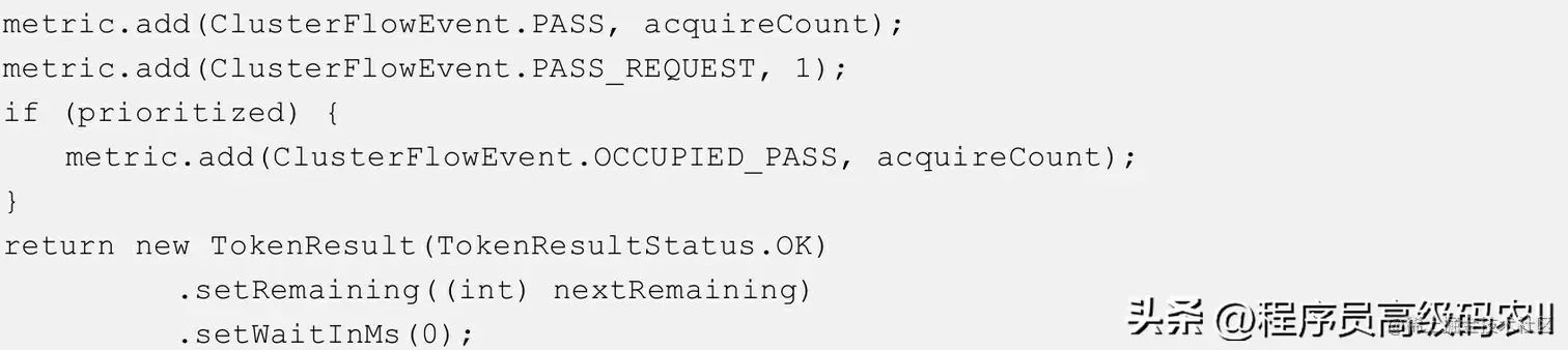 当nextRemaining的计算结果大于或等于0时,执行这部分代码,先统计放行指标数据,再将响应状态码OK发送给集群限流客户端。