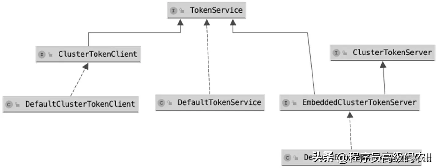sentinel-cluster-client-default模块中的ClusterTokenClient接口的实现类,DefaultTokenService与DefaultEmbeddedTokenServer分别是sentinel-cluster-server-default模块中的ClusterTokenServer接口与EmbeddedClusterTokenServer接口的实现类。