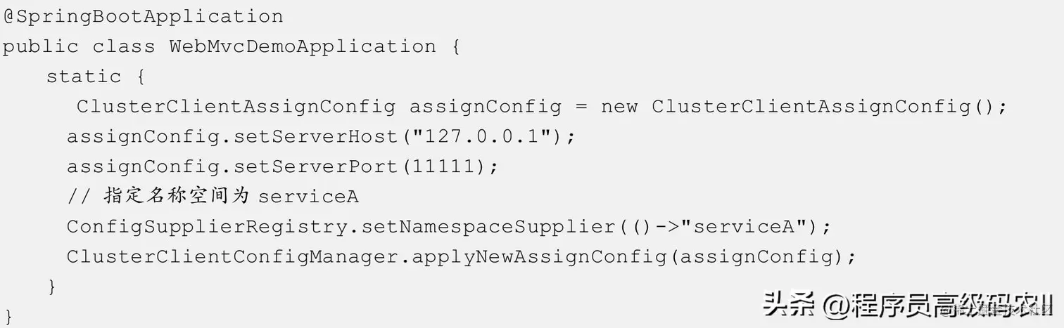 注册用于连接到集群限流服务端的配置(ClusterClientAssignConfig),指定集群限流服务端的IP地址和端口,代码如下。