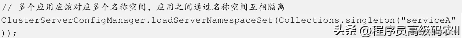 现在,我们为集群限流服务端注册名称空间以触发动态数据源的创建,使得ClusterFlowRuleManager拿到动态数据源的SentinelProperty,将规则缓存更新监听器注册到动态数据源的SentinelProperty上。注册名称空间的代码如下。