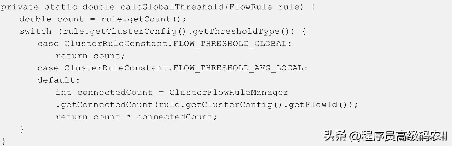 计算集群限流阈值需要根据规则配置的阈值类型计算。calcGlobalThreshold方法的源码如下。