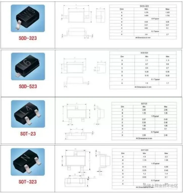 今天我们就来盘点一下常见的二极管、三极管、MOS封装类型,下图含精确尺寸。