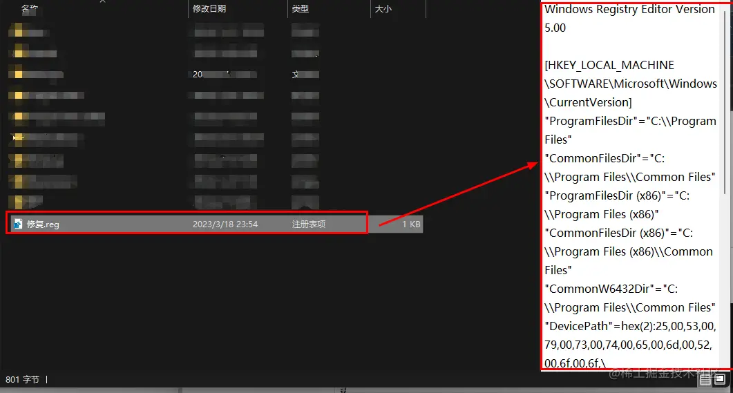 2,把上述代码保存在记事本中,重命名为 "修复.reg"。