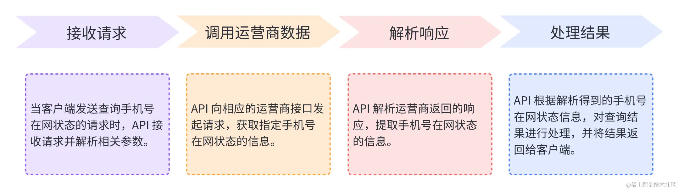 最后,API 根据解析得到的手机号在网状态信息,对查询结果进行处理,并将结果返回给客户端。