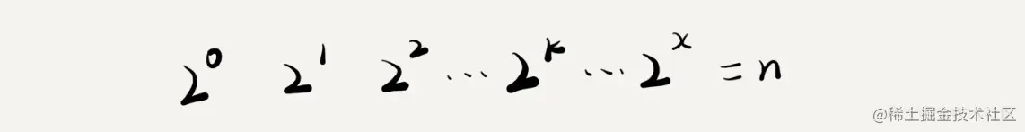 只要知道x值是多少,就知道这行代码执行的次数了。 x=log2n,所以,这段代码的时间复杂度就是O(log2n)。