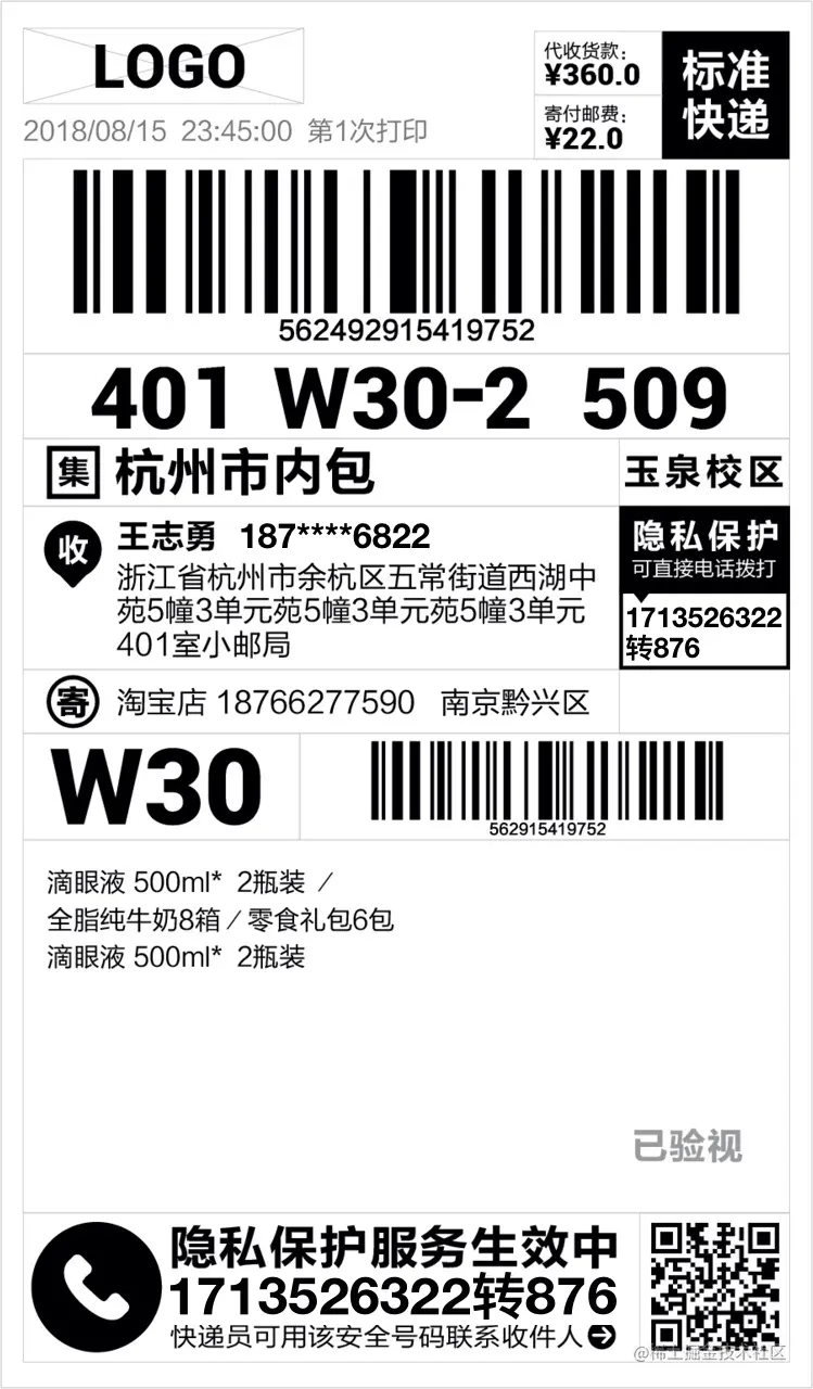 - 收件人、寄件人的姓名和电话