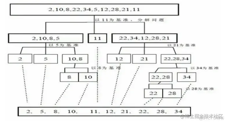 快速排序(Quicksort)是对冒泡排序的一种改进。基本思想是:通过一趟排序将要排序的数据分割成独立的两部分,其中一部分的所有数据都比另外一部分的所有数据都要小,然后再按此方法对这两部分数据分别进行快速排序,整个排序过程可以递归进行,以此达到整个数据变成有序序列